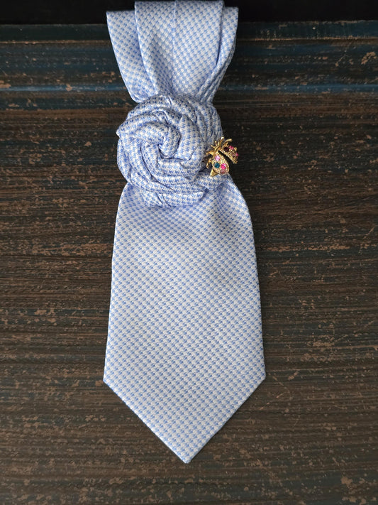 Handmade Bumble Bee Brooch Necktie: Black & White Striped Silk Necklace