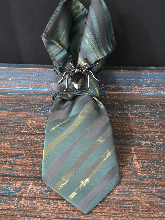 Simple Green Stripe Women's Tie- Ballerina Brooch Necklace - Handcrafted Statement Jewelry - Brooch Necktie - Stylish Neckwear For Women