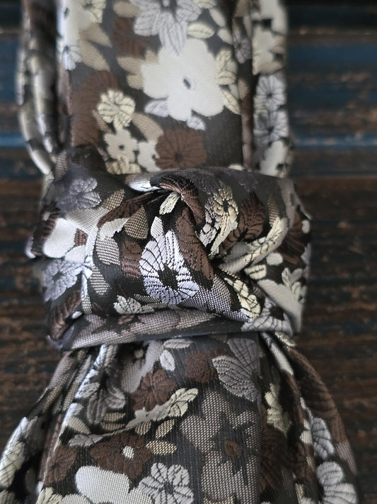 Simply Elegant Gray Floral Women's Necktie Necklace - Handcrafted Statement Jewelry - Brooch Necktie For Women