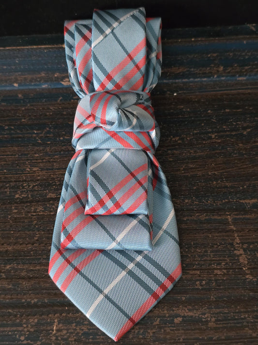 Simple but Elegant Teal Plaid Women's Necktie Necklace - Handcrafted Statement Jewelry - Brooch Necktie For Women