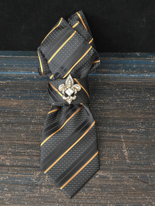 Simply Elegant Black and Gold Stripe Women's Necktie Necklace - Handcrafted Statement Jewelry - Brooch Necktie - Stylish Neckwear For Women