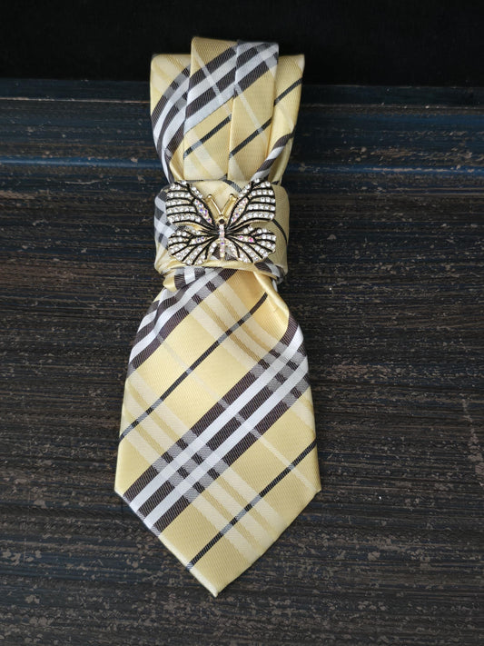 Yellow and Black Plaid Women's Necktie Necklace - Handcrafted Jewelry - Brooch Necktie - Stylish Neckwear For Women