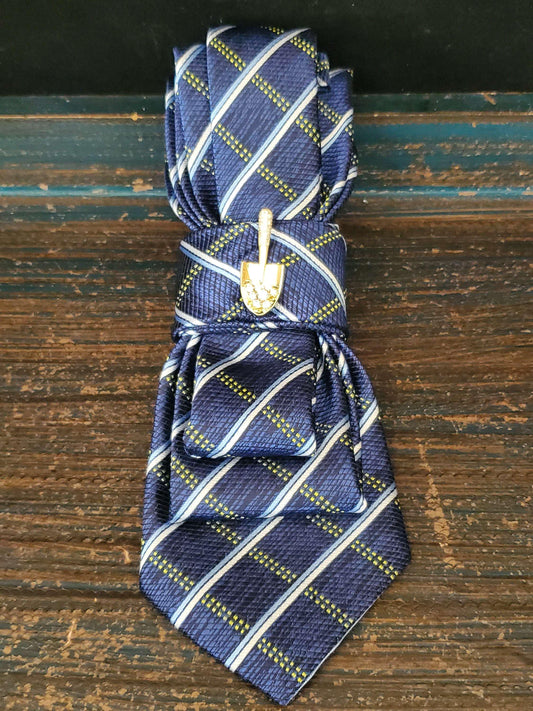 Red, Blue, White Stripe Silk Necktie Necklace: Bicycle Brooch, Adjustable