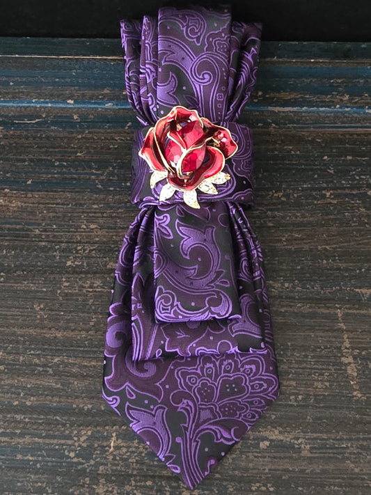 Purple Paisley Women's Tie- Ballerina Brooch Necklace - Handcrafted Statement Jewelry - Brooch Necktie - Stylish Neckwear For Women
