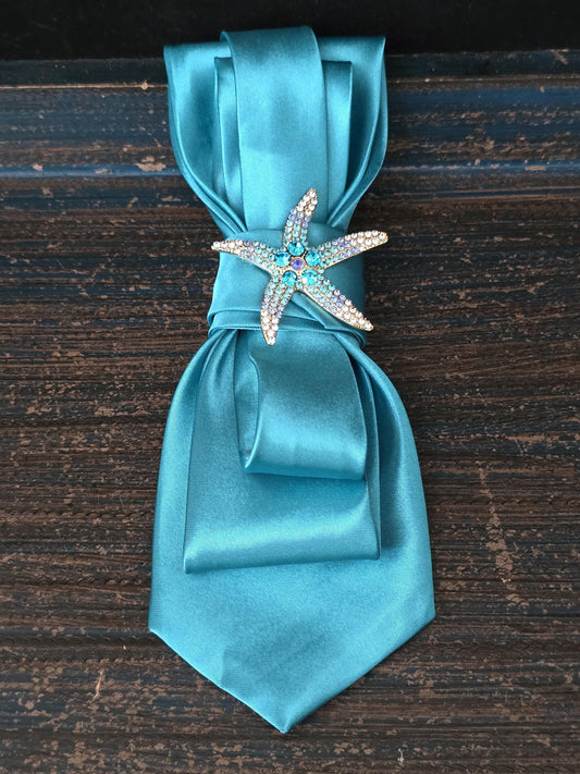 Teal Necktie Necklace: Rhinestone Starfish Brooch, Women's Fashion Tie