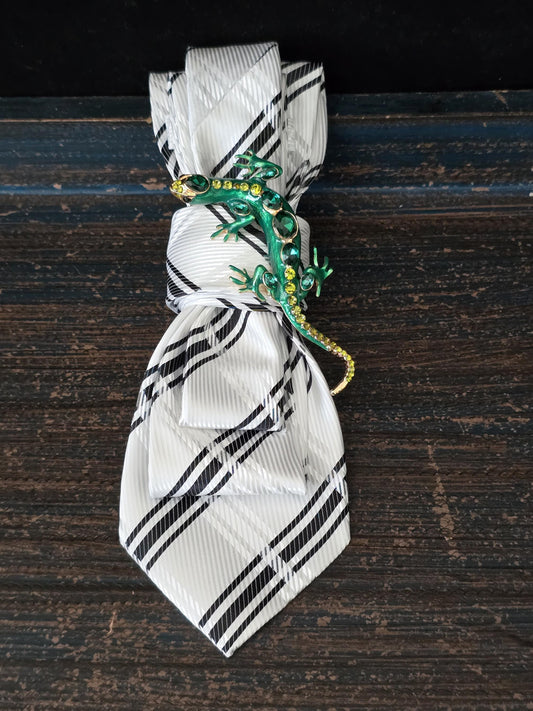 Stylish Black and White Stripe Women’s Necktie Necklace - Brooch Necklace - Handcrafted Statement Jewelry -Stylish Neckwear For Women