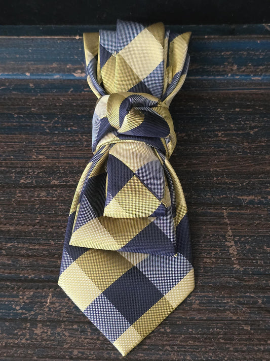 Women's Blue and Gold Plaid Necktie Necklace - Handcrafted Statement Jewelry - Brooch Necktie For Women