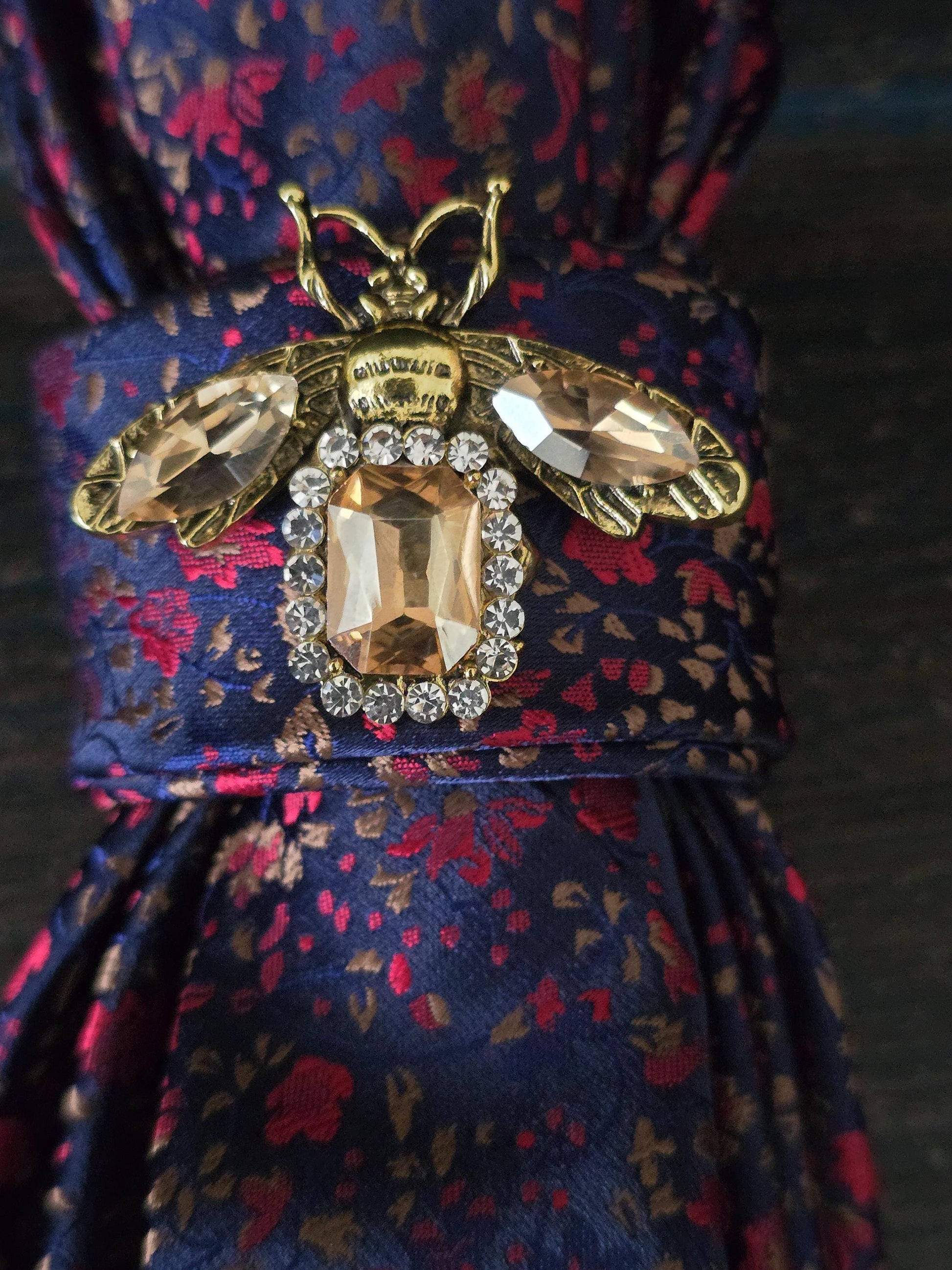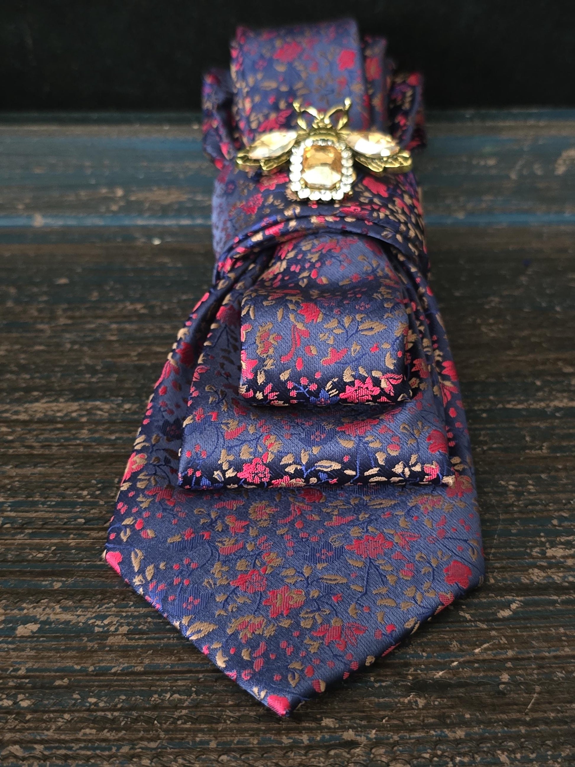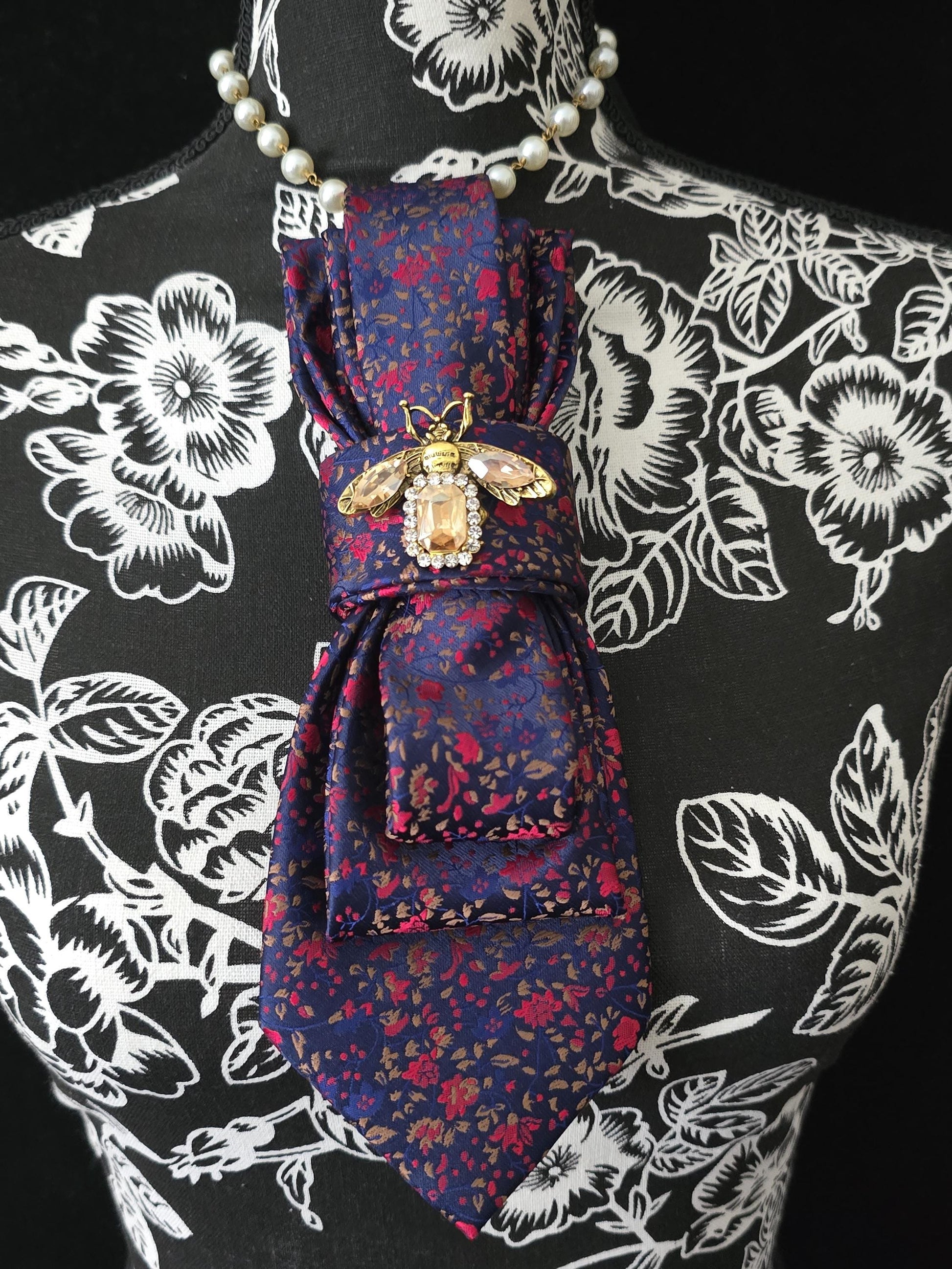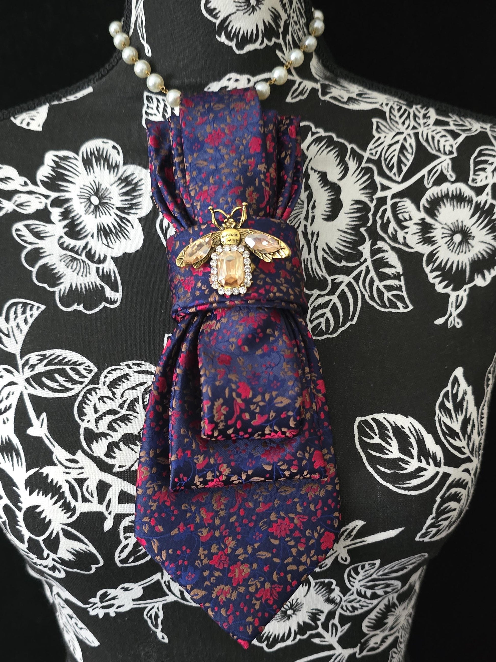 Crystal Firefly Brooch- Blue and Red Floral Women's Necktie Necklace - Handcrafted Jewelry - Brooch Necktie - Stylish Neckwear For Women