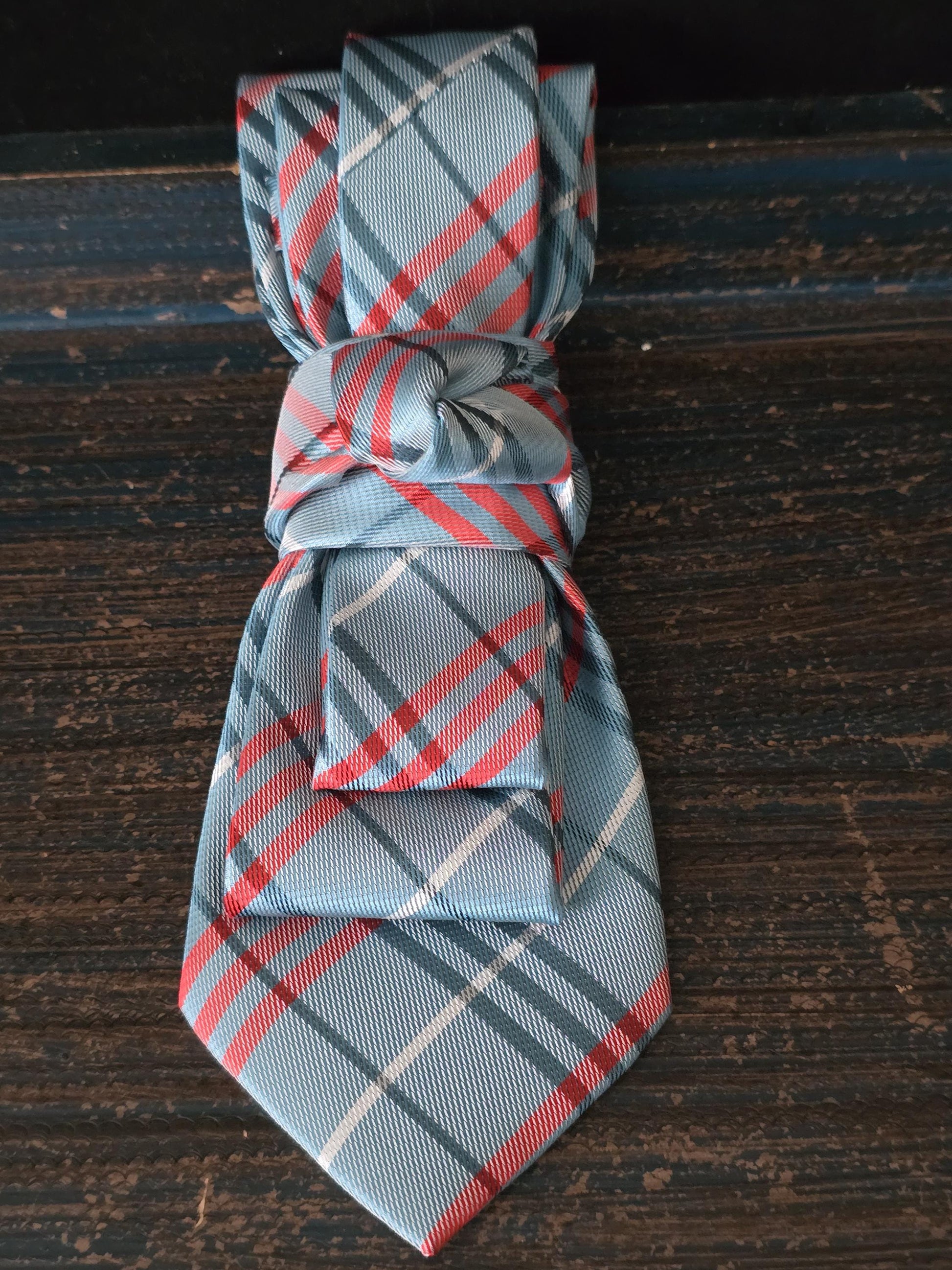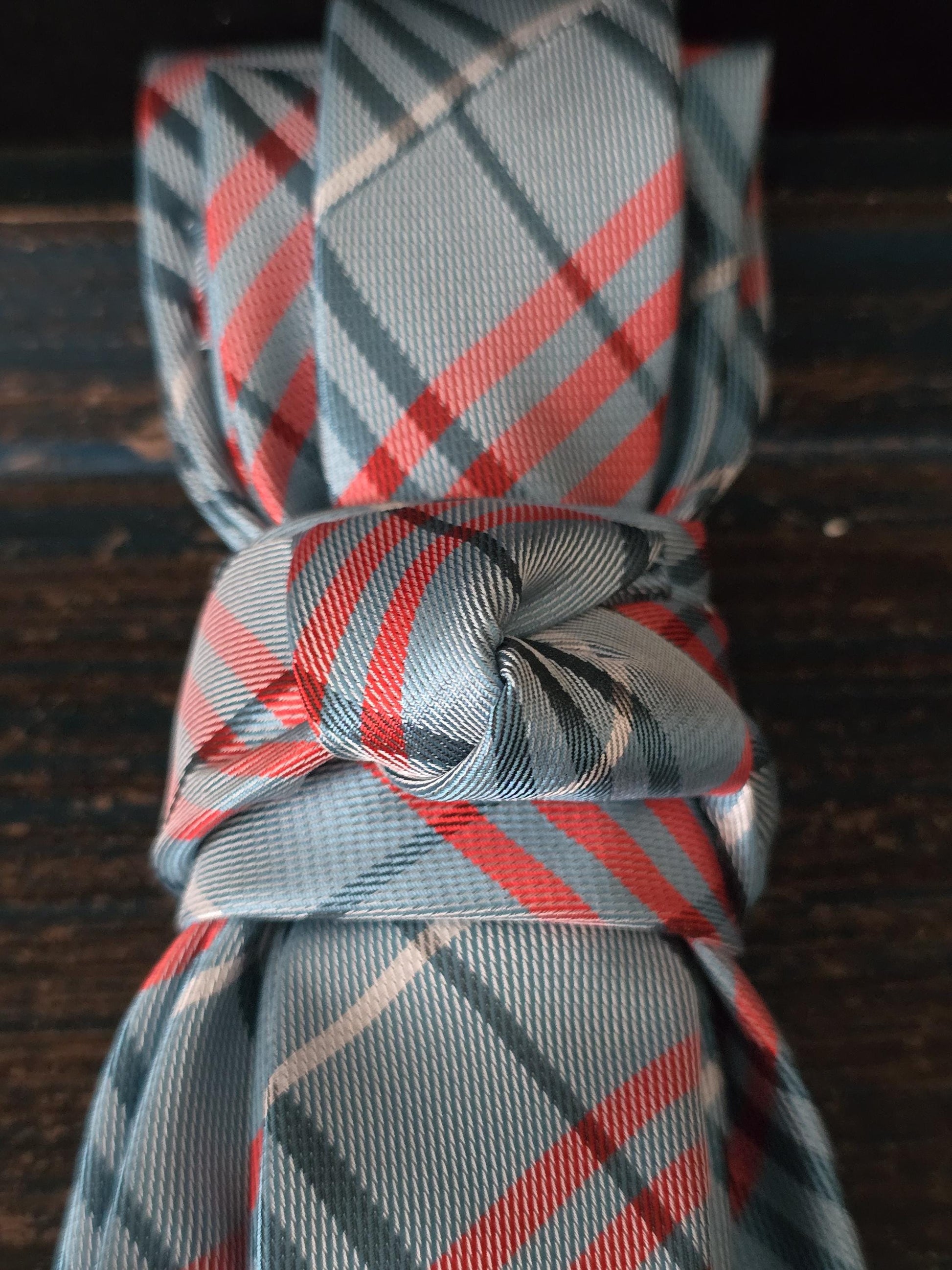 This Teal Plaid Necktie Necklace is made with a (Barry Wang) woven silk tie, and features a Tie Knot Brooch strung on Multi-Strand 6mm adjustable Rosary Chain Ribbon Tie Pearl Necklace . The soft, comfortable fabric sits perfectly on any size chest, while the adjustable necklace feature allows you to customize the fit to your liking. Measuring at a versatile length, this necktie necklace is designed to be a one-size-fits-all.
