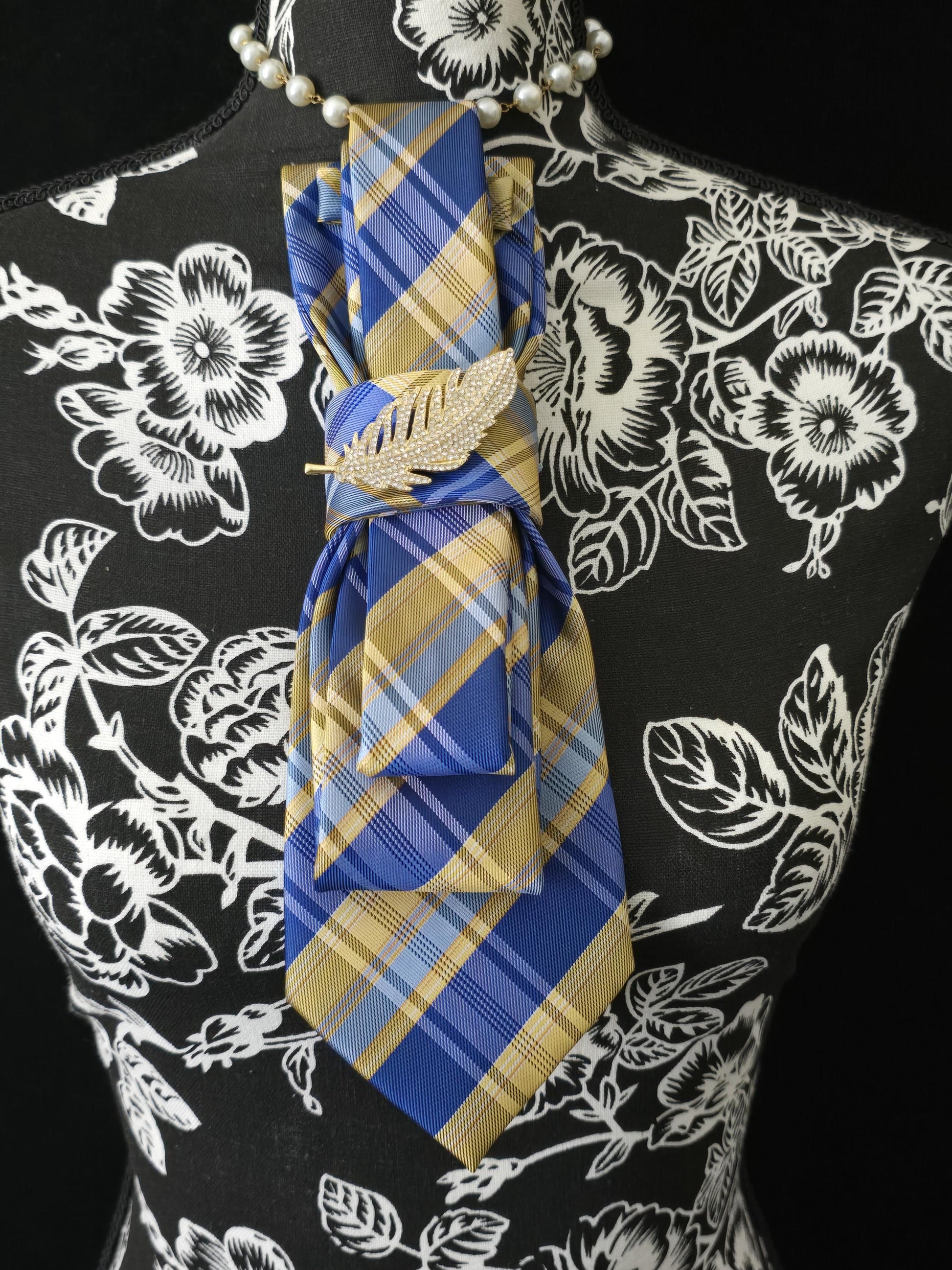 Simply Elegant Blue Plaid Women’s Necktie Necklace - Fashion Ties For Women - Brooch Necktie - Stylish Neckwear For Women