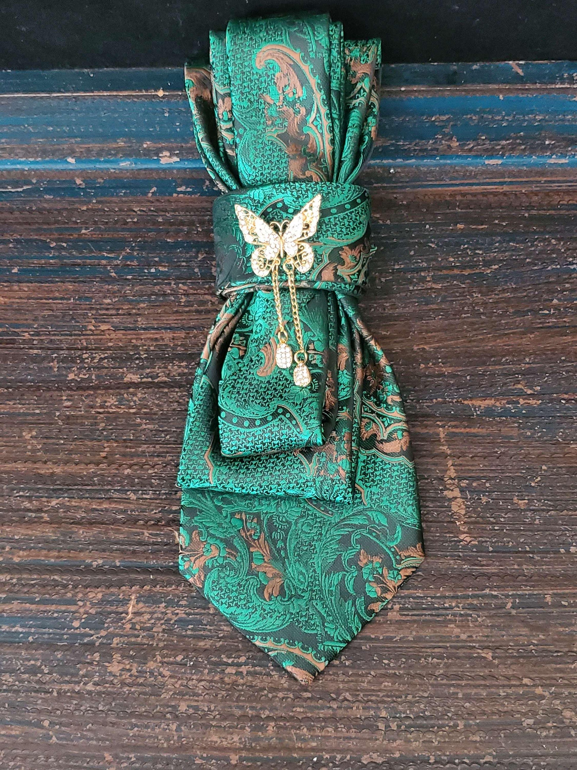 Simply Elegant Green Paisley Women's Necktie Necklace - Handcrafted Statement Jewelry - Brooch Necktie For Women