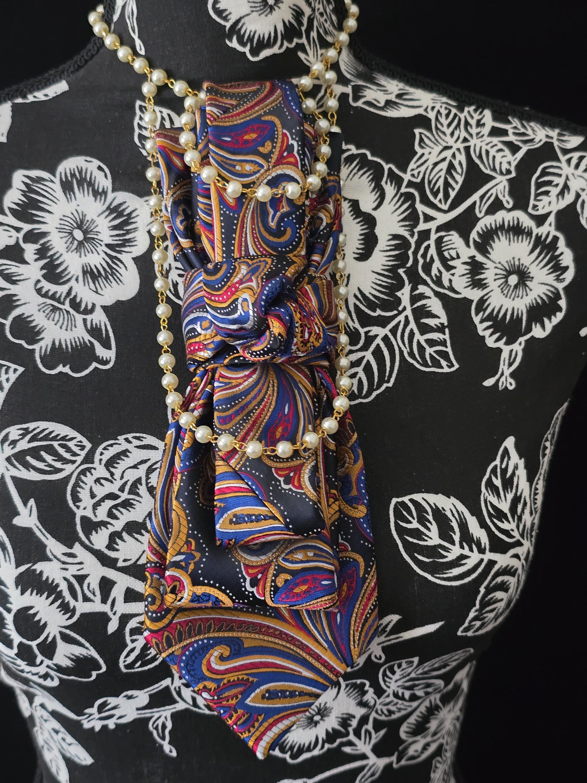 Women's Red and Blue Necktie Necklace - Handcrafted Statement Jewelry - Brooch Necktie For Women